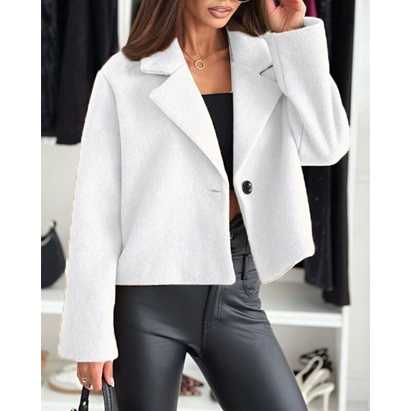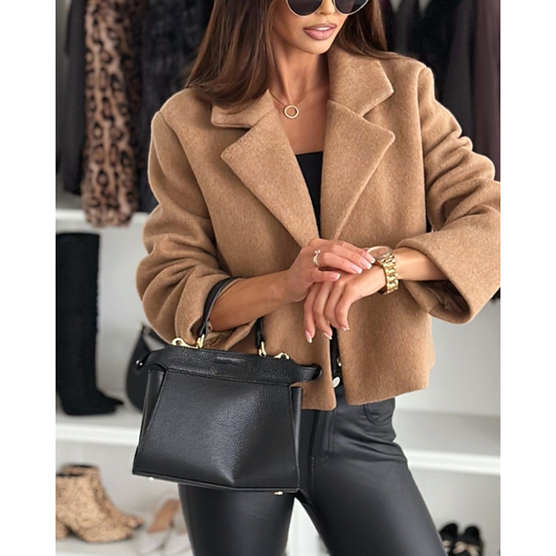 Women's Casual Jacket Warm Comfortable Buttons Fashion Outdoor Plain Going out Weekend Single Breasted Regular Lapel Regular Fit Long Sleeve Outerwear Black White Khaki Fall Winter 10