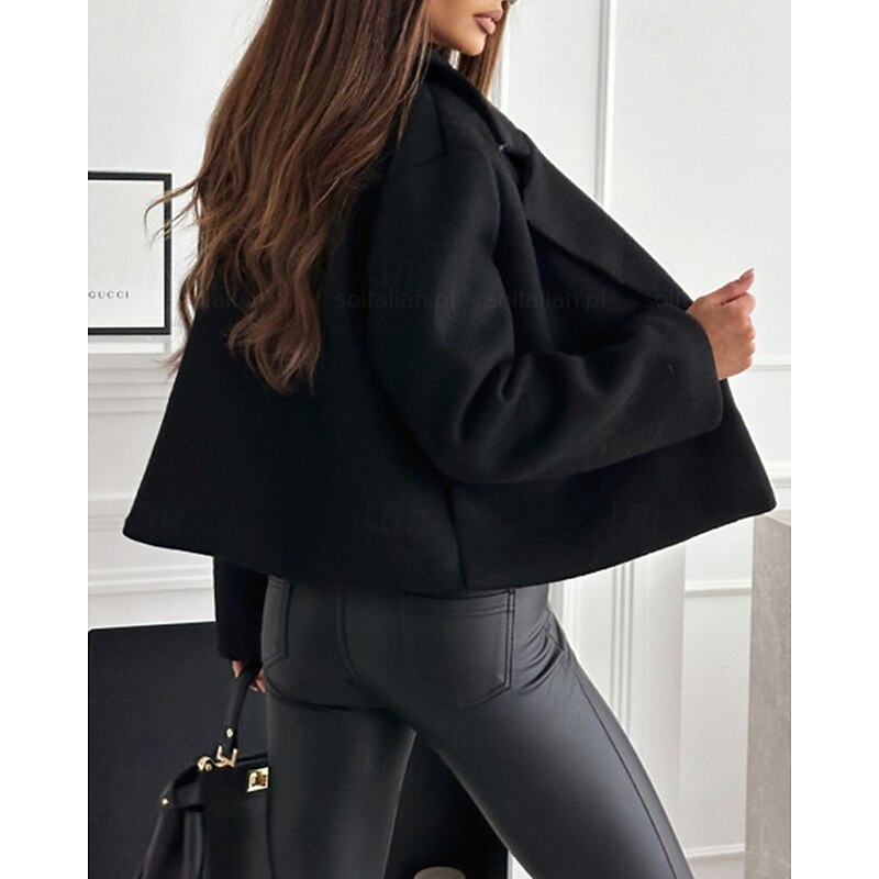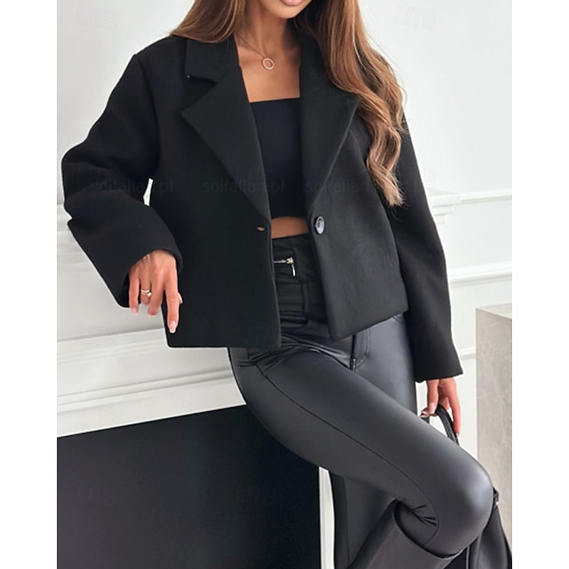 HOT ! Women's Casual Jacket Warm Comfortable Buttons Fashion Outdoor Plain Going out Weekend Single Breasted Regular Lapel Regular Fit Long Sleeve Outerwear Black White Khaki Fall Winter