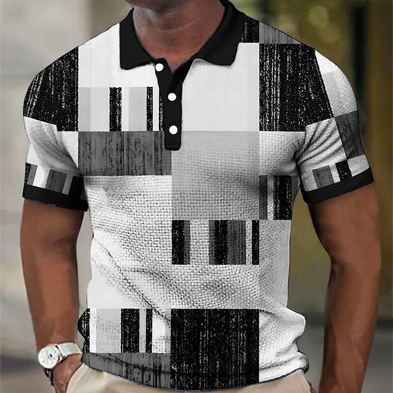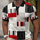 More information about Men's Plaid Waffle Polo Shirts Golf Shirt Short Sleeve Polo Shirts Collared Shirts Vintage Casual Vacation Wear Formal Wear Festival Wear Buttons 3D Print Black Yellow Red