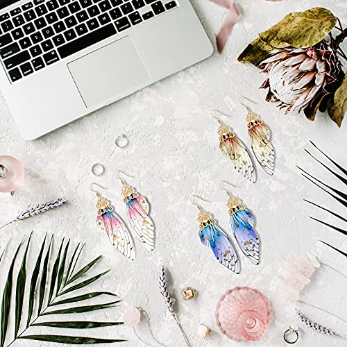 Jadive 4 Pairs Butterfly Wing Drop Earrings Christmas Butterfly Fairy Dangle Earring Multicolored Hook Simulation Insect for Women Wedding Jewelry 4