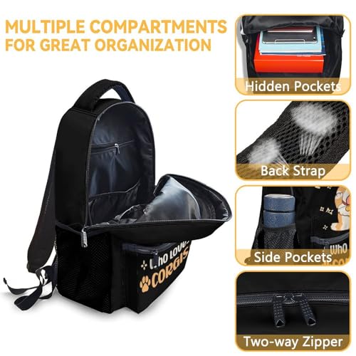 • EYE-CATCHING & FUNCTIONARY: Back to school with pretty corgi pattern printed and multifunctional backpack. This backpack fits a variety of student demands. You can also customize your own name or text on the surface of backpacks, lunch bags and pencil cases. Not accessible to lose and has personality.