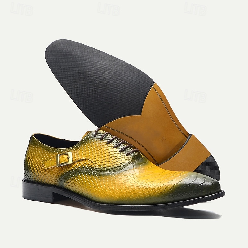 More information about Men's Yellow Gradient Snake Pattern Leather Oxford Shoes with Buckle Detail - Luxury Formal Dress Shoes for Business and Special Occasions