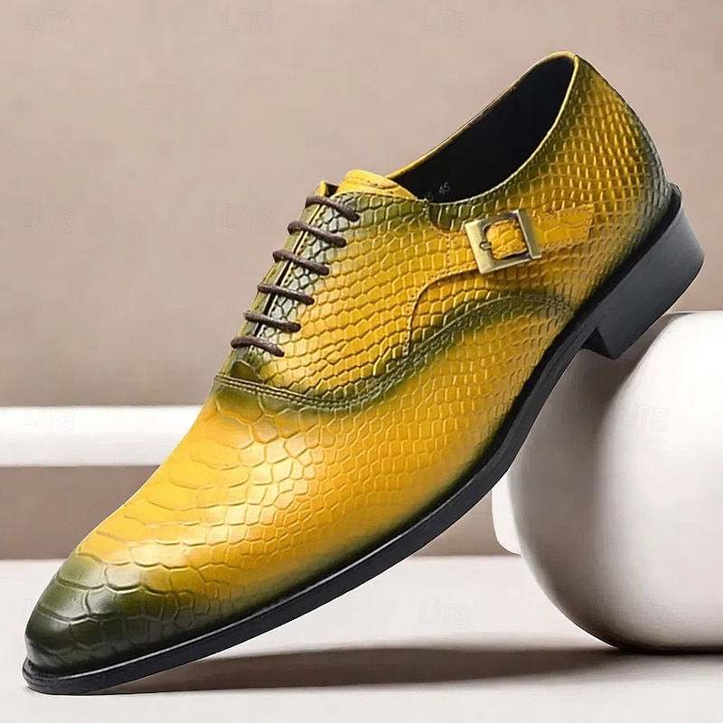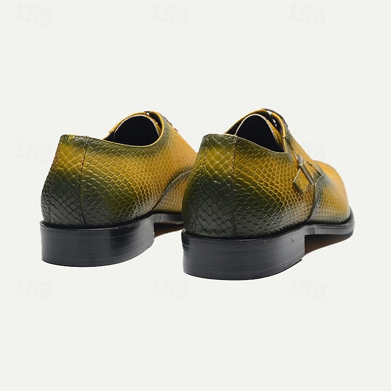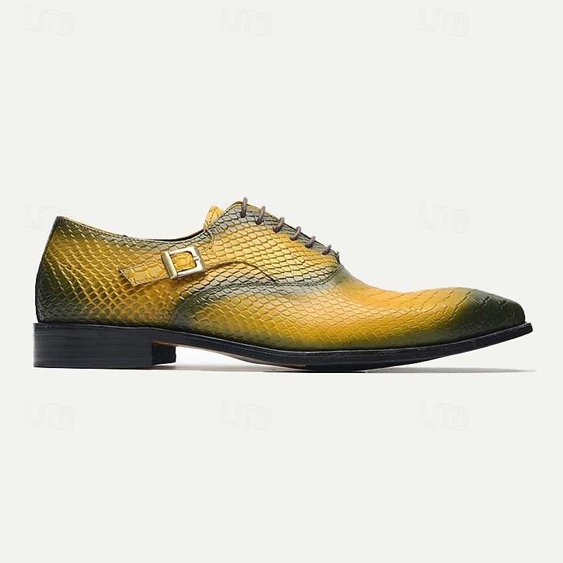 Men's Yellow Gradient Snake Pattern Leather Oxford Shoes with Buckle Detail - Luxury Formal Dress Shoes for Business and Special Occasions