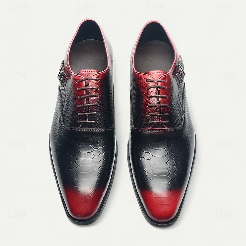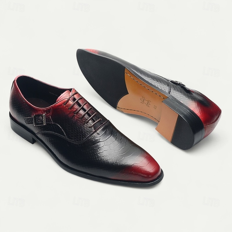 The shoes incorporate a classic lace-up closure complemented by a decorative side buckle, adding a modern twist to traditional elegance. The standout gradient pattern enhances the overall appeal, making these shoes a perfect choice for men who seek style and sophistication.