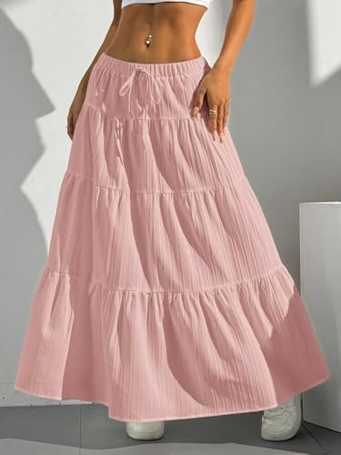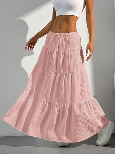 • 98% Polyester, 2% Elastane / Casual / Plain / Lined / Long / Tiered Layer, Frill, Ruffle Hem / Woven Fabric / No / Baby Pink / Natural(Mid Waist) / Regular Fit / Daily