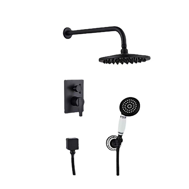 Shower Faucet Set Wall Mounted Vintage Brass, Rainfall Overhead Combo Set Bathroom Mixer Ceramic Shower Hendheld Sprayer High Pressure Black Antique 1