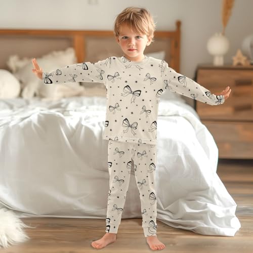 Pajama Sets Long Sleeve Bow Tie Stars Pattern Soft Comfy Sleepwear 2 Piece PJS 3-8T 2