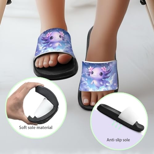 HOT ! Girls Slide Sandals Axolotl Theme Summer Slippers for Kids Shower Shoes