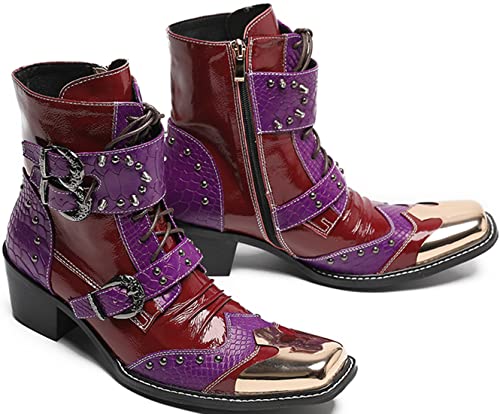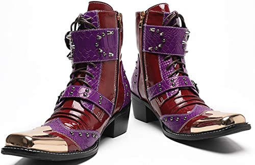 • Bold Red & Purple Genuine Leather: Made with high-quality genuine leather in striking red and purple hues, these mens cowboy boots are designed to make a statement and stand out in any crowd.