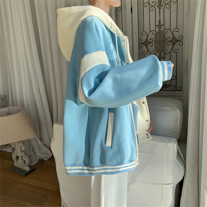• This hoodie is featured with color block, drawstring, pocket, long sleeve and button.