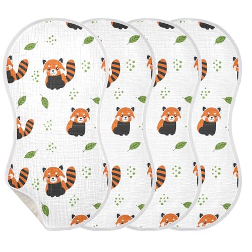 J JOYSAY Red Panda Leaf White Baby Burp Cloths for Boys Girls Large 22''x11'' Cotton 4 Layer Boys & Girls Rags for Infant Drool one sizex2 4