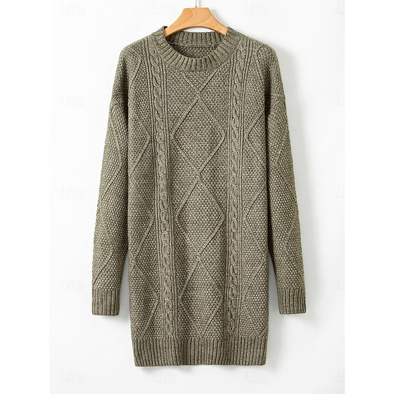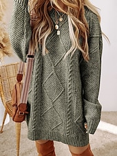Women's Sweater Dress Casual gentle Pure Color Cable Crew Neck Knitted Long Sleeve Long Tops Knit Outdoor Daily Weekend Black Green Fall Winter