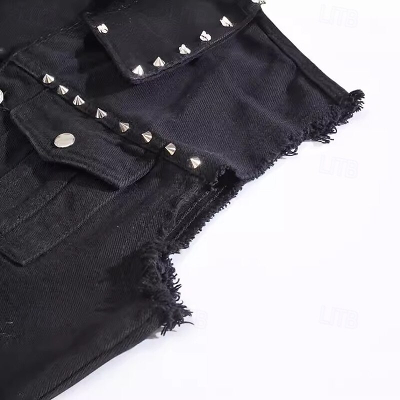 More information about Retro Vintage Punk & Gothic 1980s Motorcycle Vest Denim Vest Pop Star Rocker Rivet Solid Color Fancy Dress Women's Masquerade Party Adults' Vest Spring & Summer