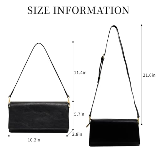 • Material: This black shoulder bag is made of high-quality genuine leather. Its surface features a texture, giving it a fashionable and elegant appearance.