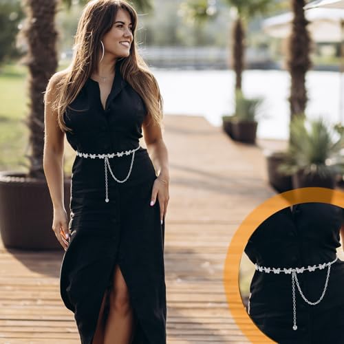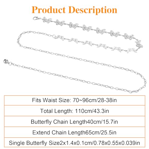 Care instructions: Wet Wipe CleanFashionable Design】The waist chain belt is made of alloy and rhinestones, imitating a delicate and elegant butterfly. Each butterfly is intricately detailed, displaying vibrant colors and sheen. The modern design makes you look glamorous, making it an excellent accessory for all fashion lovers. The waist belt is exquisite and novel, easily making you stand out and highlight your figure.【Adjustable size]】The dress belt length is 105cm/43.3in, (suitable for people under 130 lb) ; Fits waist size: 28~38in. The chain is adjustable and suitable for most of people. Weighing only 43 grams, the belt is lightweight and keeps you looking stylish without looking bulky, making it a must-have for every woman's year-round wardrobe.【High-Quality Material】Butterfly waist chain is made of selected alloy material, which is durable, well-made, and not easy to fade and break; the waist chains are all polished, have a smooth surface, and adopt high-quality plating, which can maintain the alloy luster over time and can be adjusted freely. Show elegance.【Outfit Matching】The stylish metal waist belt is very versatile and suitable for pants, jeans, leggings and leggings, tank tops, long shirts, jumpsuits, dresses, skirts, Halloween and cosplay costumes, etc. Very pretty and a must-have for your wardrobe.【Exquisite Gift】Metal women's chain belt is suitable for wearing in various occasions, daily life, party, dinner, dance, beach, travel, nightclub, club, carnival, cosplay, etc. It highlights your perfect figure, makes you more confident and attractive in the crowdThis rhinestone belt is a perfect gift for women, its exquisite and stylish appearance is perfect for moms, ladies, wives, girlfriends, daughters, Christmas, birthdays, Valentine's Day, anniversaries and graduations gift. Perfect for everyday use. excellent materials and excellent craftsmanship ensure long-lasting durability.