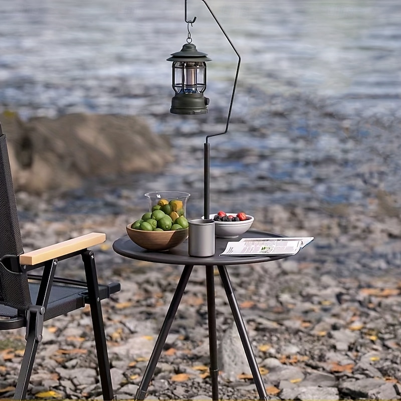 $21.99 - Portable Black Outdoor Table with Lamp Stand - Foldable, Iron Construction, Casual Style, Includes Storage Bag, Small Outdoor Table 2025. Shop for cheap Camping Equipment online? Buy at lightinthebox.com on sale today!