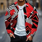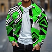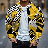 HOT ! Men's Geometric Color Block Corduroy Shirt Shirt Jacket Overshirt Long Sleeve Casual Outdoor Dailywear Fall Winter Turndown Button-Down Warm Jacket with Flap Pockets Yellow Red Green Dark Blue