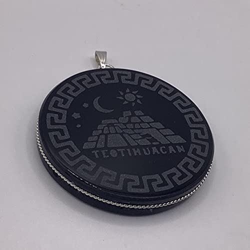 Generico 1.9 in Obsidian Round Pendant engraced Necklace scrying Polished Black Round Mirror Handmade Pyramid Healing Crystal Stone Amulet Spiritual 5