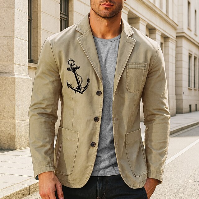 More information about Men's Anchor Blazer Cotton Suit Jacket Suits Coat Casual Outdoor Dailywear Multiple Pockets Three Button Stripe Lined Suit Jacket Fall Winter Notch lapel collar Long Sleeve Black khaki Army Green