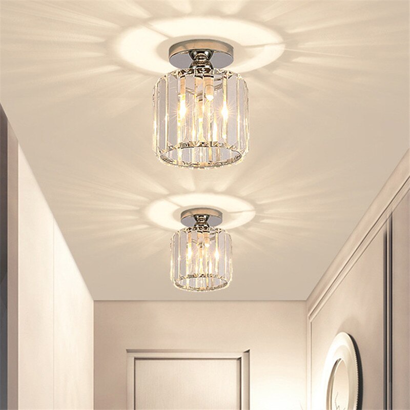 14 cm Round Square Crystal Ceiling Light LED Chandelier Corridor Light Gold Black Siliver Flush Mount Lights Metal Electroplated Modern Nordic Style Gift for Family Friends 220-240V 2