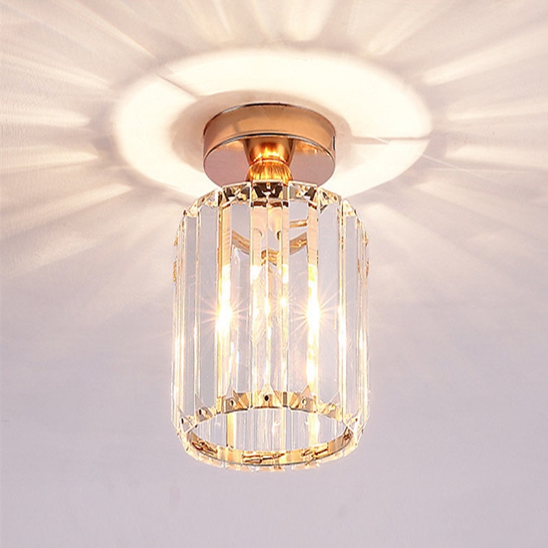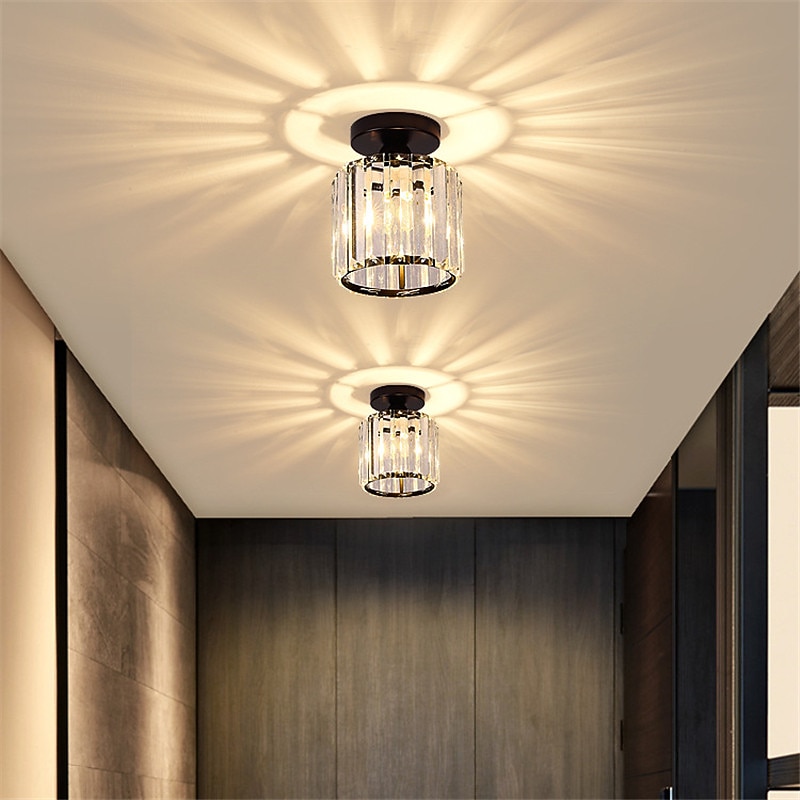 14 cm Round Square Crystal Ceiling Light LED Chandelier Corridor Light Gold Black Siliver Flush Mount Lights Metal Electroplated Modern Nordic Style Gift for Family Friends 220-240V 1