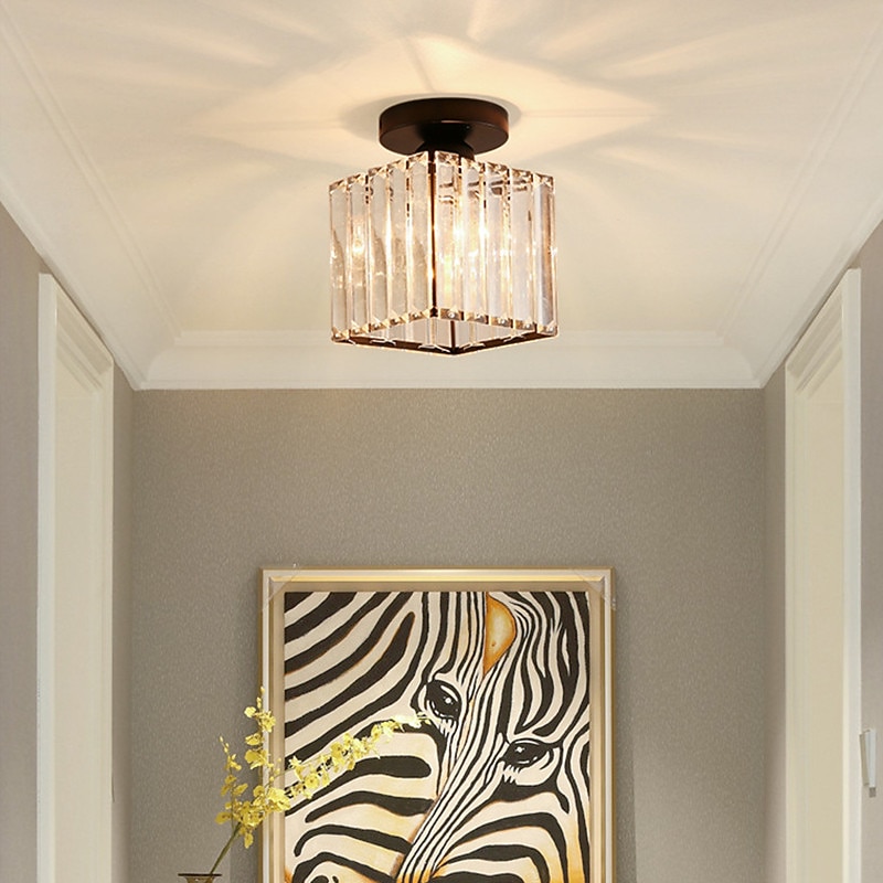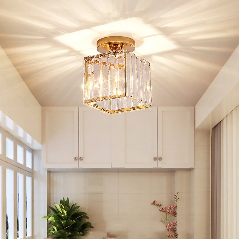 14 cm Round Square Crystal Ceiling Light LED Chandelier Corridor Light Gold Black Siliver Flush Mount Lights Metal Electroplated Modern Nordic Style Gift for Family Friends 220-240V 8
