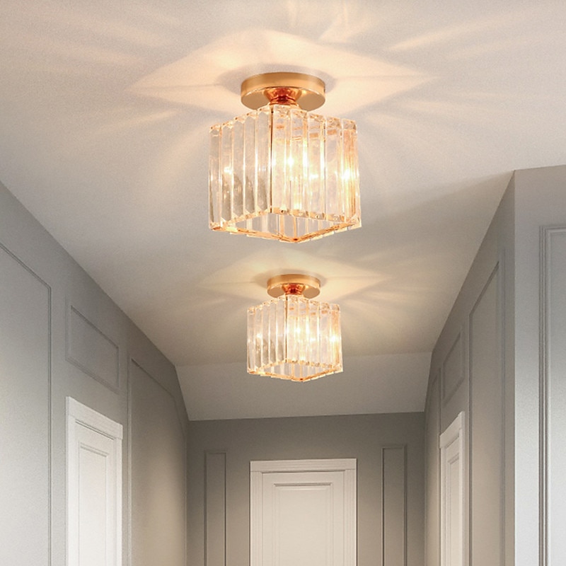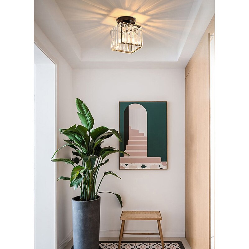14 cm Round Square Crystal Ceiling Light LED Chandelier Corridor Light Gold Black Siliver Flush Mount Lights Metal Electroplated Modern Nordic Style Gift for Family Friends 220-240V 12