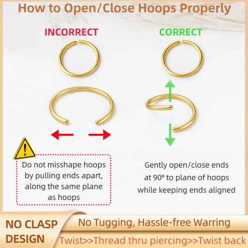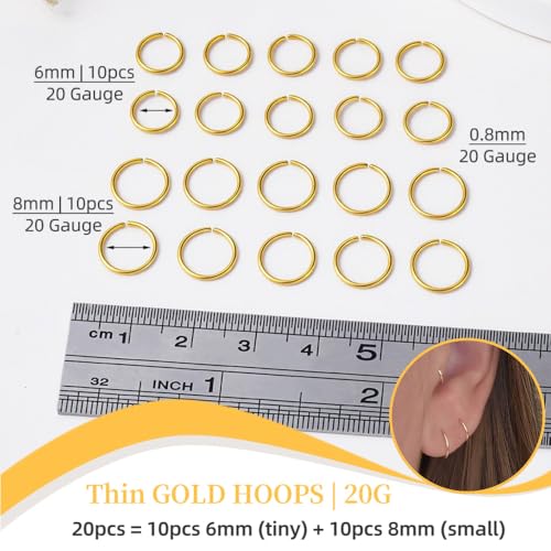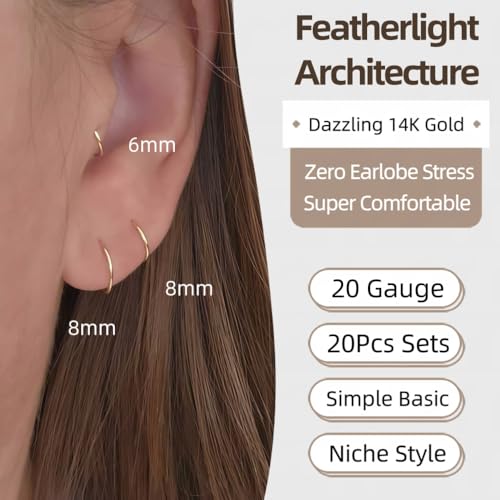 20PCS 14K Gold Plated Hoop Earrings Set for Women - Featherweight Ultra-Thin 20G | Nickel-gratis Surgical Steel, Non-Tarnish | Minimalist Stackable Earrings for Sensitive Ears (No Clasp)