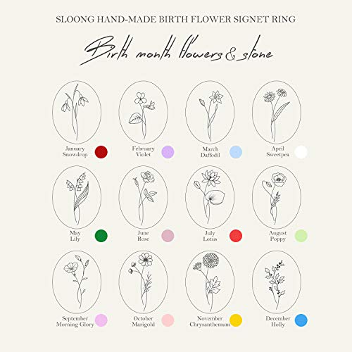 HOT ! SLOONG Handmade Birth Month Flower Signet Ring 14K Gold Plated Ring Birth Stone Ring Birthday Valentine's Christmas Gift for Mom Daughter Girlfriend Wife
