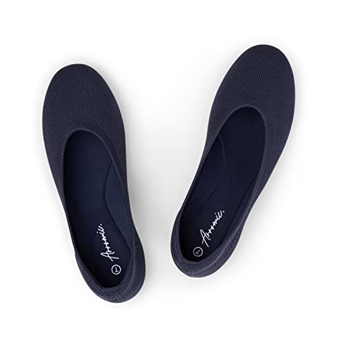 Arromic Navy Blue Flats Shoes for Women, Washable Round Toe Knit Ballet Flats Shoes with Arch Support and pleasant Heel Cushions, supple Slip on Dressy Shoes for Business Casual, Office, Work