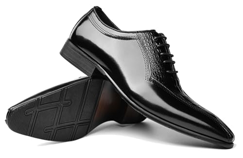 Santimon Men’s Genuine Leather Oxford Dress Shoes – Wingtip Brogue Oxfords for Business, Wedding & Tuxedo – Black & Brown Zapatos de Vestir para Hombre
