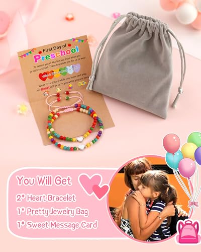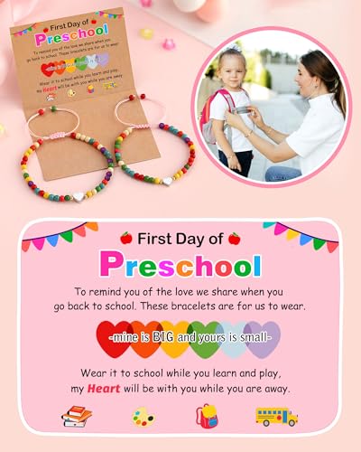 • 【First Day of Preschool Bracelet】-- Here are two bracelets, one for Mom, and one for Daughter. Give her this little bracelet when she goes to school, and tell her not to be afraid, mom's heart will always be with you throughout the day.