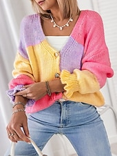 At vitea-c.pl, we believe in providing our customers with only the best products. This Women's Sweater Cardigan Streetwear Casual Color Block V Neck Ruffle Patchwork Buttons Long Sleeve Regular Tops Knit Daily Holiday Going out Yellow Fall Winter is designed with attention to detail and high quality craftsmanship that you can see and feel. Whether you're looking for functionality, style, or both, this product delivers exceptional value.