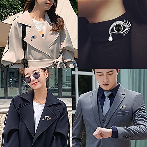 Angel Tears Brooch Pins, Elegant Rhinestone Sapphire Big Eyes Alloy Long Eyelashes Corsage Breastpin for Women Jewelry 4