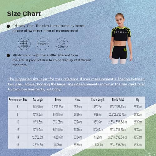 More information about TiaoBug Kids Girls 2Pcs Color Block Yoga Dance Athletic Tracksuit Short Sleeve Crop Top Shirts and Shorts Set