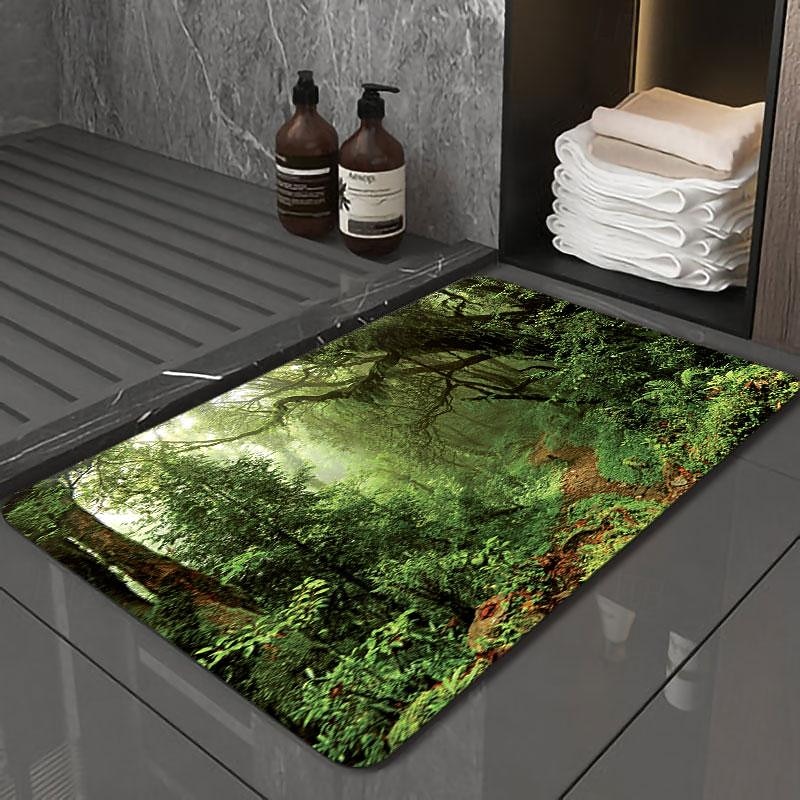 Forest Bath Mat Non-slip Deco Diatomaceous Earth Bath Mat Soft Mat Rubber Anti-Slip Fast Dry Super Absorbent Thin Bathroom Mat for Under Door - Bathroom Floor Mat Rug Bathtub Front Shower Mat Sink 1