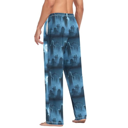 HOT ! Spirits Graveyard Men's Cotton Pajama Pants with Pockets and Drawstring Comfortable and Stylish,S