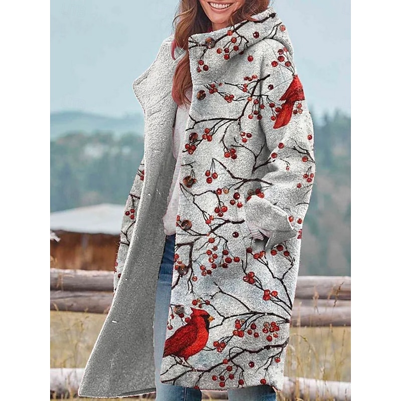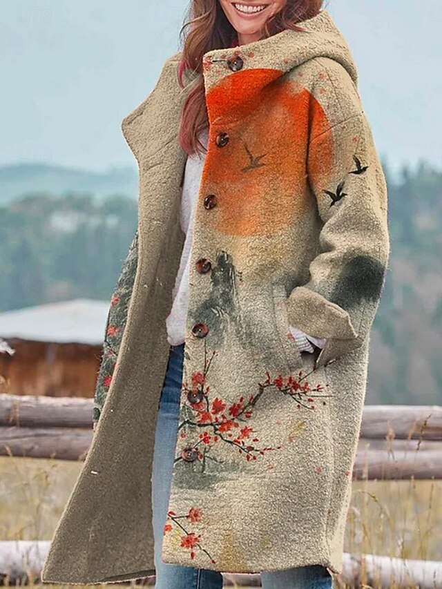 More information about Women's Winter Jacket Fleece Jacket Coat Warm Breathable Pocket Buttons Print Active Daily Casual Scenery Vacation Street Daily Single Breasted Long Hoodie Regular Fit Long Sleeve Outerwear Yellow