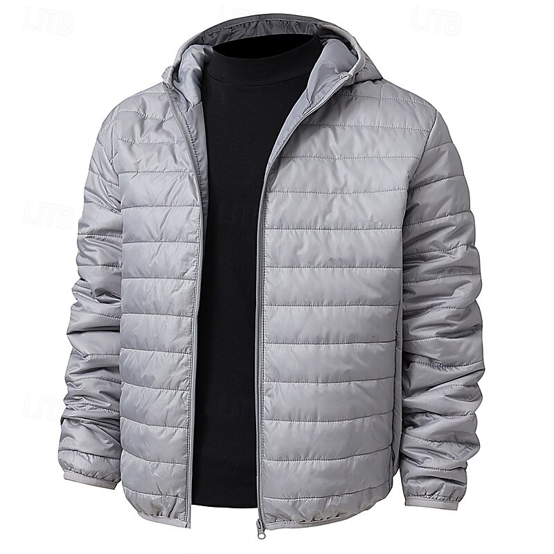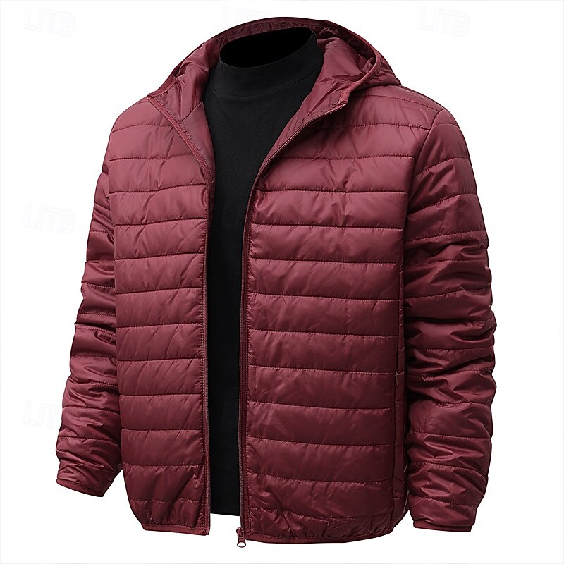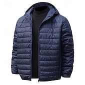 More information about Men's Winter Coat Puffer Jacket Pocket Polyster Vacation Daily Wear Date Regular Fashion Casual Comfortable Thermal Warm Fall Winter Solid / Plain Color Black Red Blue Light Grey Puffer Jacket
