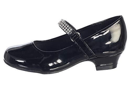 • ✨CUTE and FANCY: These black dress shoes for girls are made of long lasting shiny patent leather - Beautiful Rhinestones on mary jane strap - Great black mary janes girls with heel
