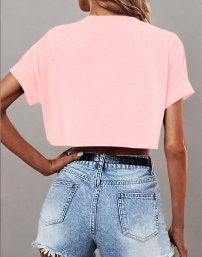 Dyexces Womens Crop Tops Short Sleeve Crewneck Cropped T Shirt Casual Summer Solid Color Loose Basic Tees with Pockets 5
