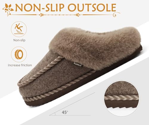 KuaiLu Womens Memory Foam Slippers with Cozy Fluff Plush Ladies Bedroom Pantuflas Comfy House Winter Moccasin Essential Trendy Slippers Comfortable Indoor Outdoor Rubber Sole Footwear (US5-11) 5