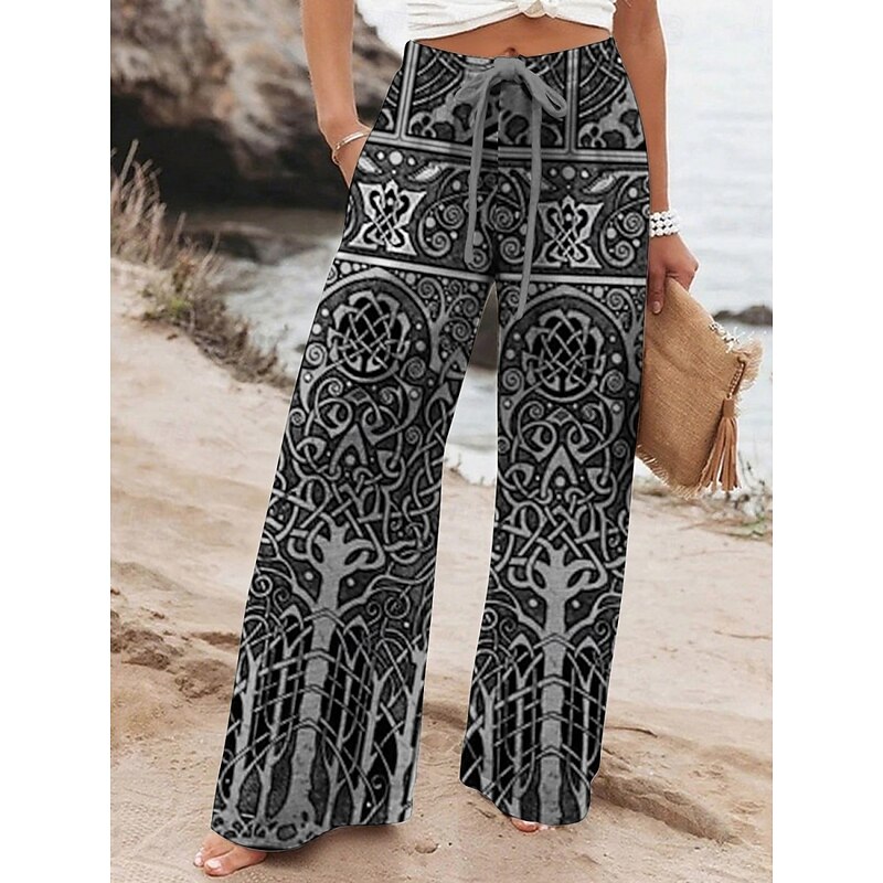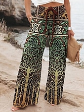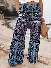 More information about Women's Wide Leg Pants Trousers Vintage Ethnic Style Long High Waist Graphic Prints Elastic Waist Printing High Cut Breathability Soft Micro-elastic Vacation Street Daily Wear Red Blue Purple Green