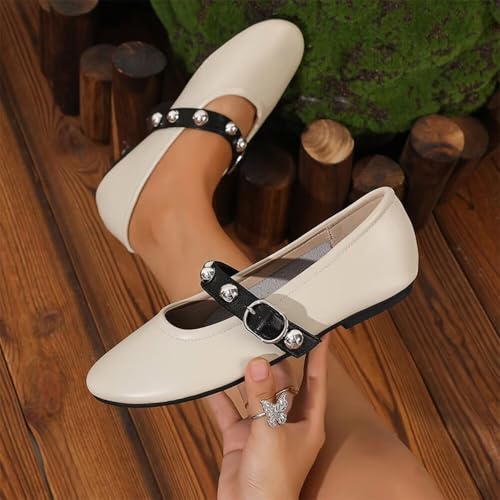 • 【Design】The ballet flats feature rivet decorations, providing a touch of complexity and Mary Jane's aesthetic beauty that complements every piece of clothing and occasion.