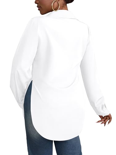 Rooscier Women's Collar V Neck Long Sleeve Slit Side Button Down Long Shirt Blouse Top 5