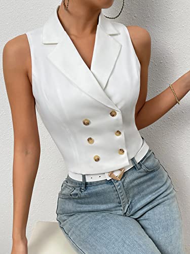 HOT ! Floerns Women's Double Breasted Sleeveless Notched Lapel Vest Blazer Jacket