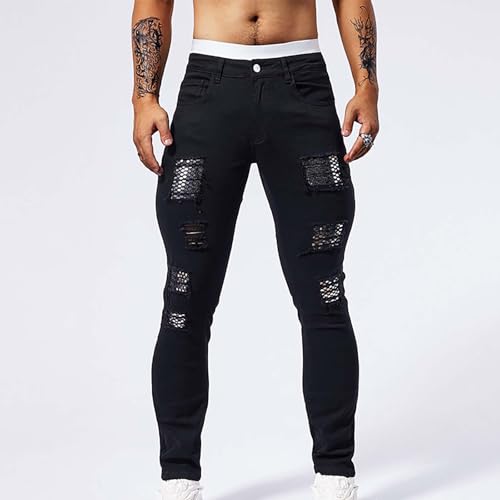 HOT ! Men's Denim Pants Stretchy Ripped Glitter Sequins Y2k Pants Jeans Hip Hop Tapered 80s Vintage Disco Party Outfits