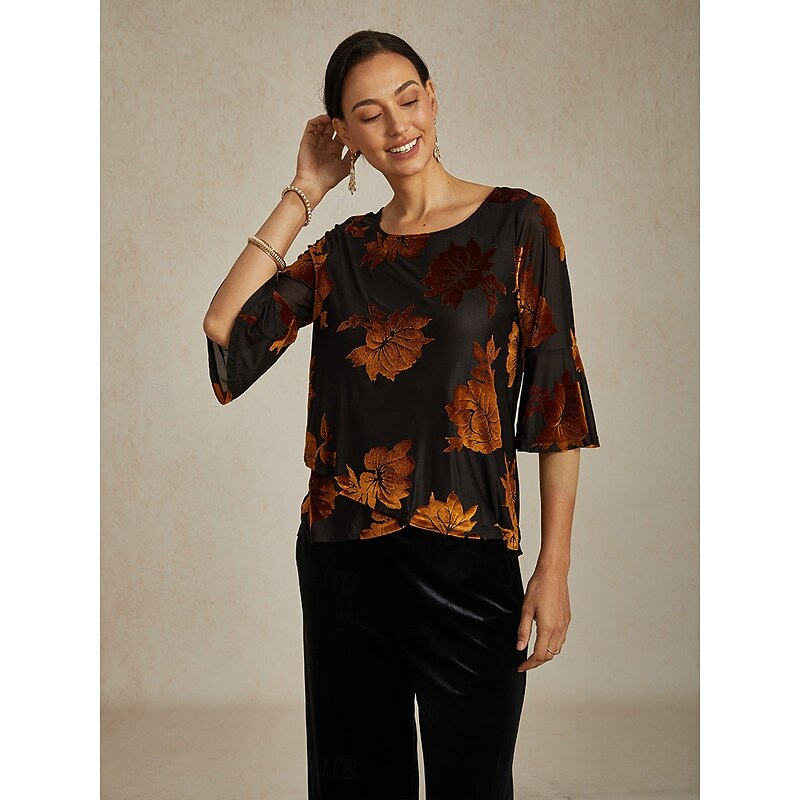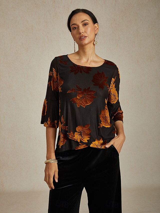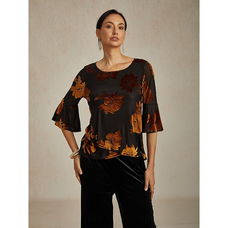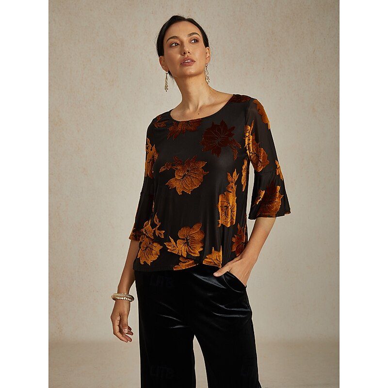 This Women's Blouse Dressy Tops Velvet Floral Elegant trendy Casual Crew Neck Regular Tops Wedding Guest Daily Brown Fall Winter combines elegant design with practical functionality. Every detail has been carefully considered to ensure you get the best possible experience. The first-class construction means this product will serve you well for years to come.