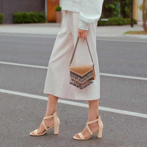 ZURIN Women's Strappy Block Heels Chunky High Heels Sandals Open Toe Ankle Strap Pumps Dress Shoes for Wedding Bridal Evening Party Prom
