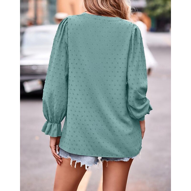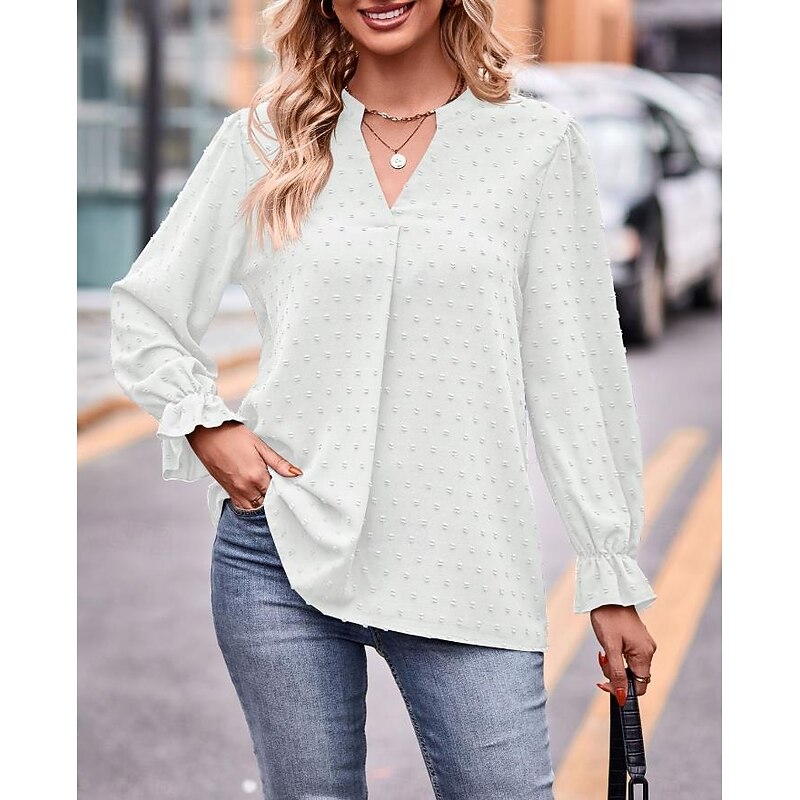 More information about Women's Blouse Solid Color Plain Elegant Stylish Long Sleeve Ruffle Sleeve Notched Neck Regular Tops Work Daily Ruched Black White Blue Green Spring Fall
